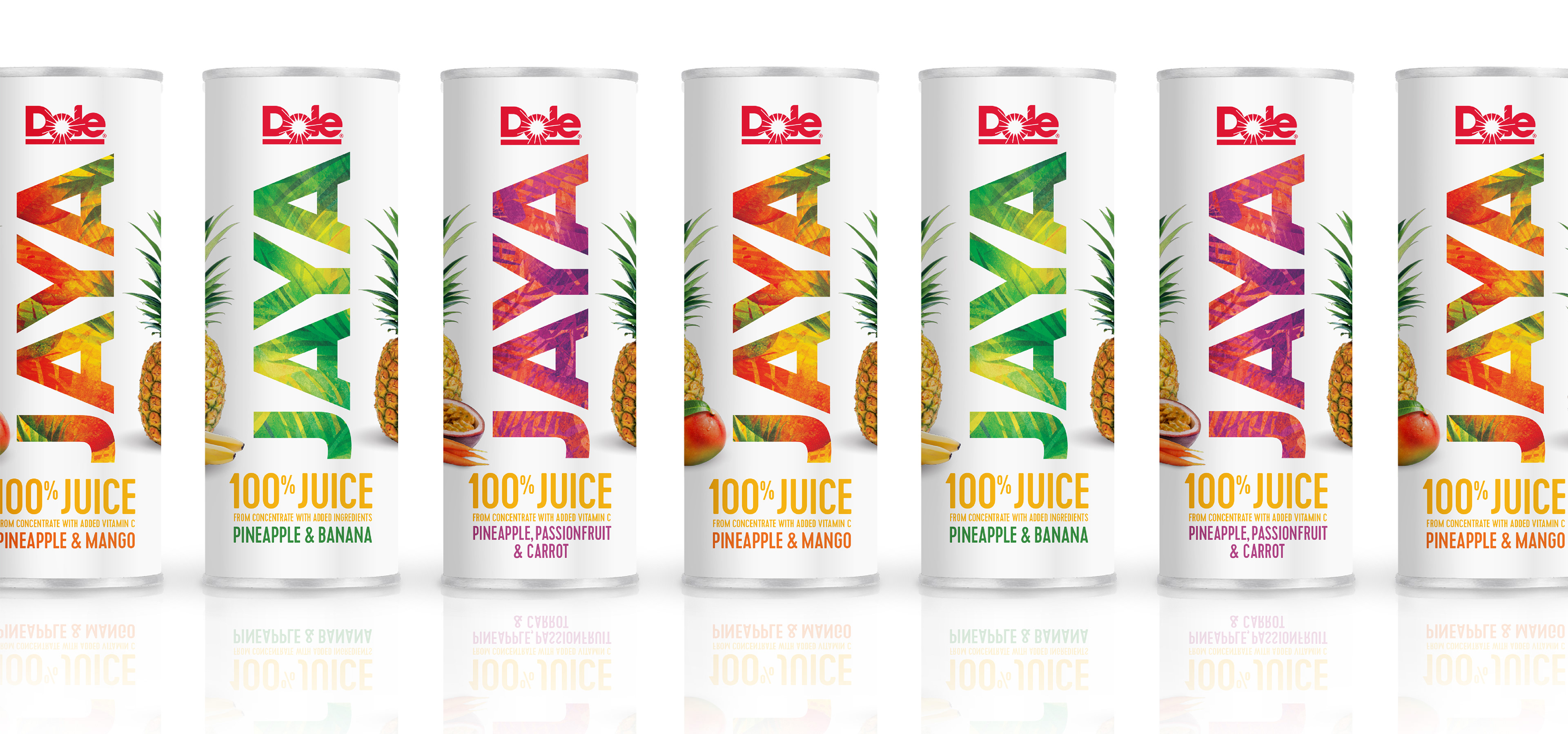 To stay relevant in the juice aisle, Dole had launched a sub-brand called Dole Jaya—a line of fruity, pineapple-based juices mixed with other tropical fruits and veggies. The problem was the brand and its packaging were completely lost in the juice category. Dole hired SRG to reinvigorate the brand, and I had the opportunity to work on the new positioning, identity, and packaging. My design below was selected for launch in 2018.
